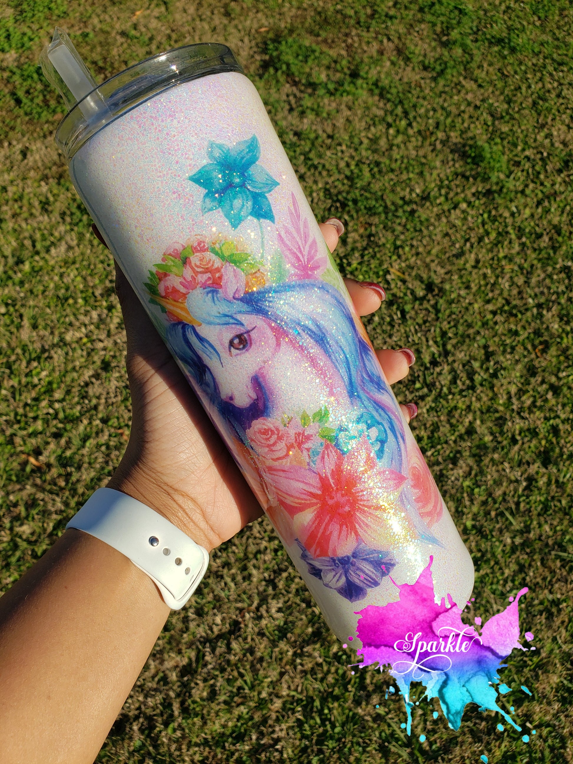 This gorgeous hand crafted Unicorn tumbler can be personalized or crafted as is in a variety of sizes and tumbler shapes for your drinking pleasure. Customize this or purchase as is and enjoy hot drinks or cold drinks for hours!